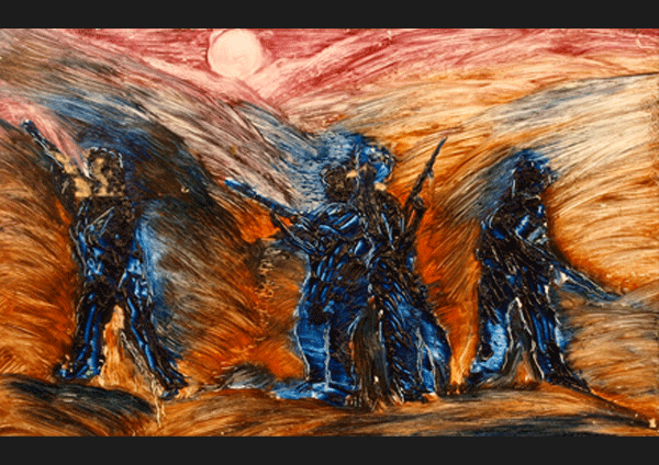 Over the years Hugh has used oils, water colours and acrylics to portray his mindscape. In 1986 he ventured into abstract painting which he said allowed him to comment on political issues such as the Irish Famine (an Gorta Mór), the protests at Drumcree, the exclusion of Sinn Féin from talks at Stormont in the late 1990s and Barack Obama’s election.