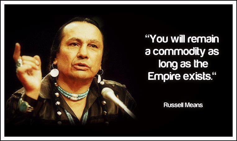 On Monday morning, October 22, 2012, Russell Means, our Indigenous Native warrior, passed on from his physical existence, leaving us a stalwart and exemplary legacy of unrelenting struggle and courage in the face of an increasingly avaricious, vampiric, and hypocritical U.S. Empire. [Reference: republished in the, ‘Russell Means Freedom’ site, To Be Black and Head of the U.S. Empire-A Contradiction in Terms].
