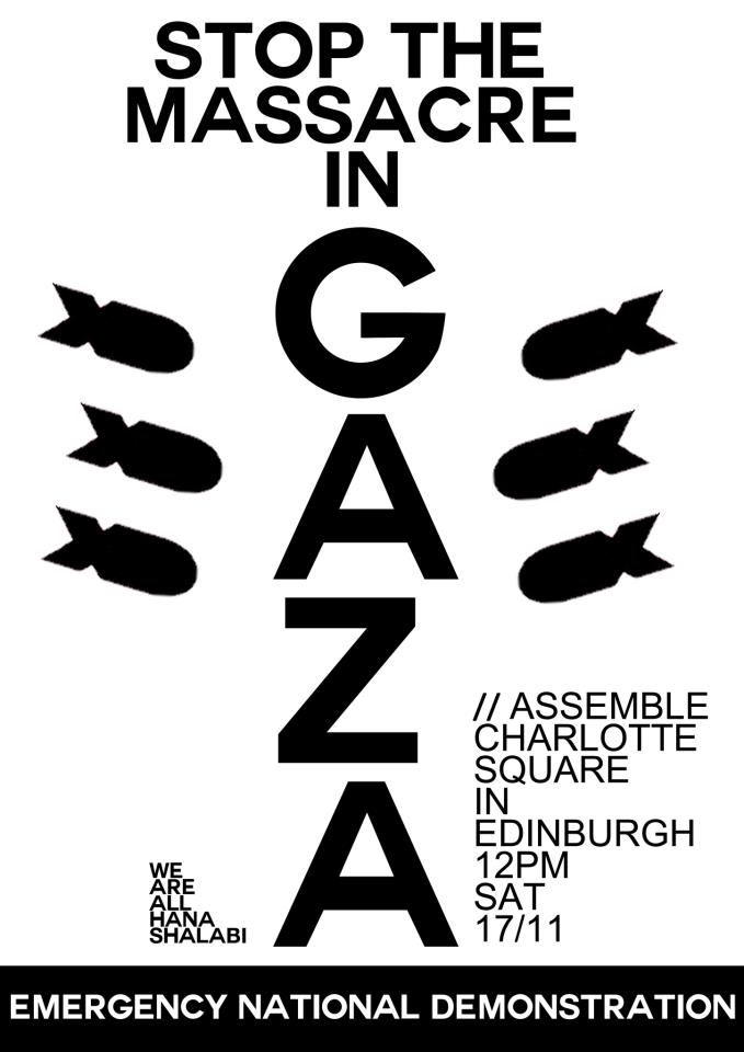 Scotland’s National Demonstration For Gaza 16Nov 201219 Nov 2012Add a comment Share this: Click to share on X (Opens in new window) X Click to share on Facebook (Opens in new window) Facebook Like Loading... Related